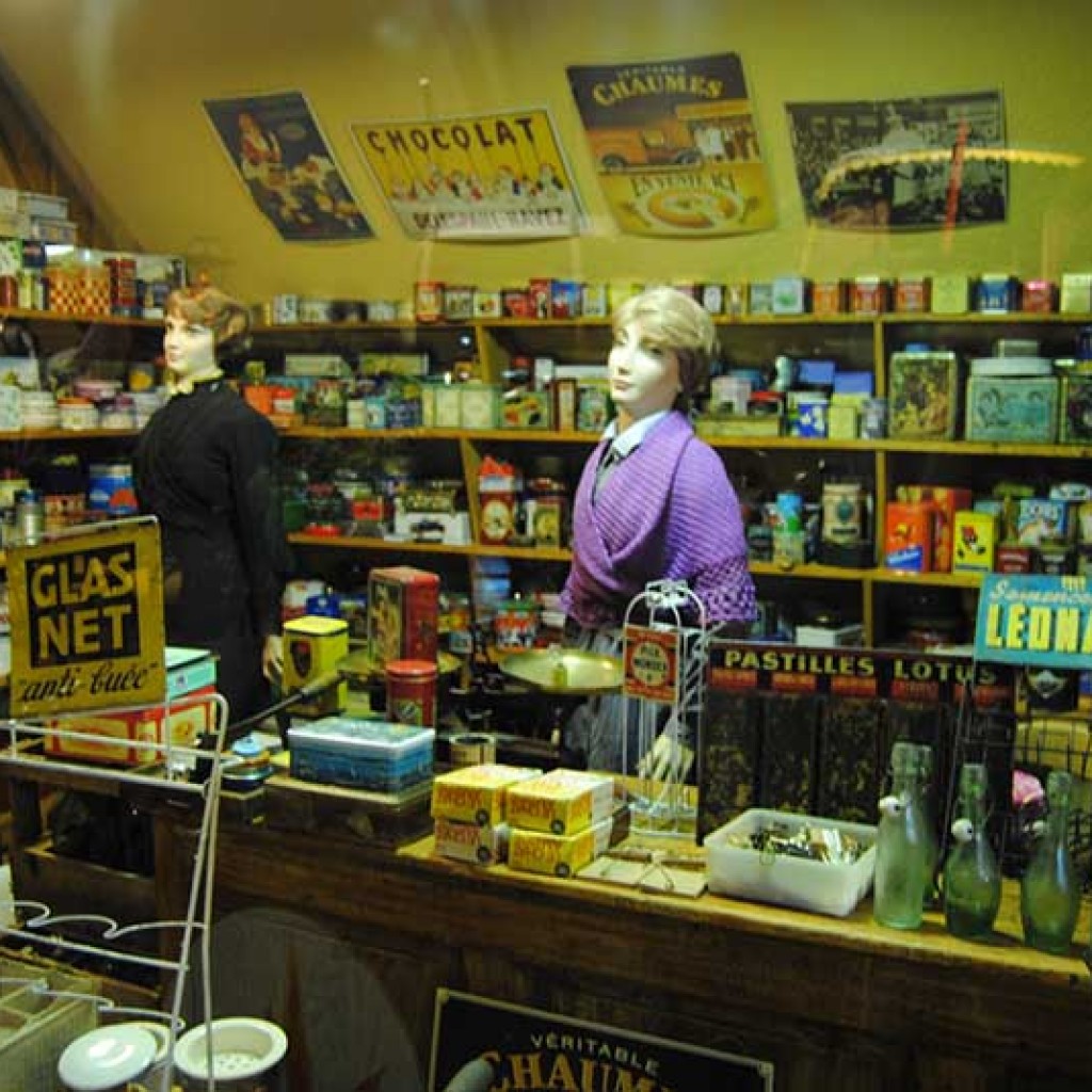 Très attachés aux savoirs faire des anciens, Michel Hommell et son équipe ont reconstitué une vingtaine de boutiques et ateliers avec des mannequins en habit et les objets d‘époque.